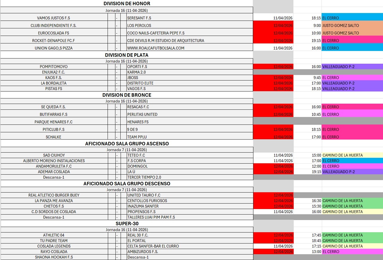 Pincha AQUÍ para ver los horarios de las JORNADA 16