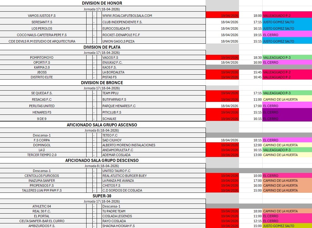 Pincha AQUÍ para ver los horarios de las JORNADA 17